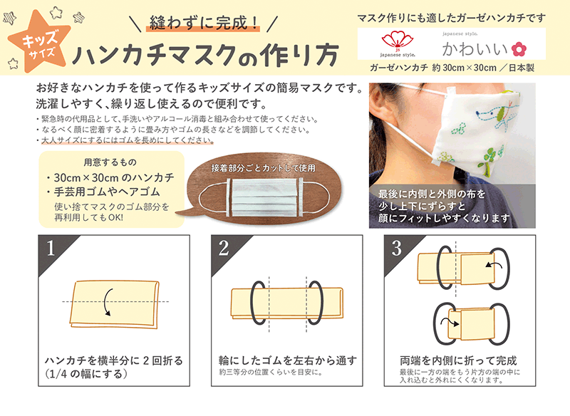【エントリー&楽天カードでP12倍】【代引不可・メール便・送料込み】国産 japanese style ガーゼハンカチ かわいい* 30×30cmマスク マスク代用 マスク代わり マスク代用品 ハンカチマスク 簡易マスク 布マスク 子供 手作り 布 洗える【代引不可・同梱不可】【プチギフト】